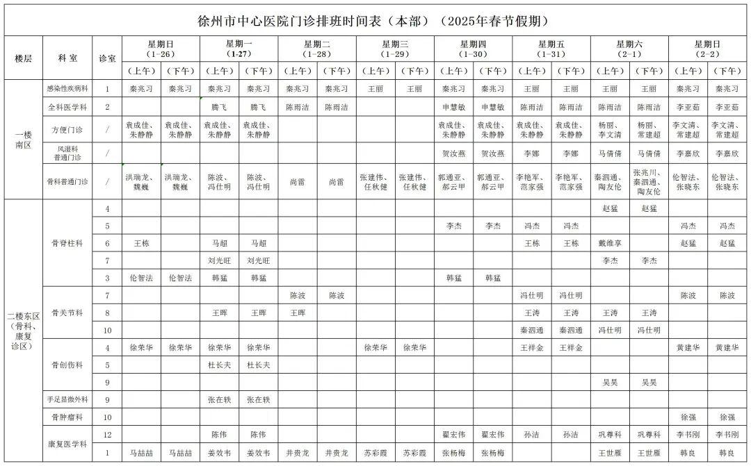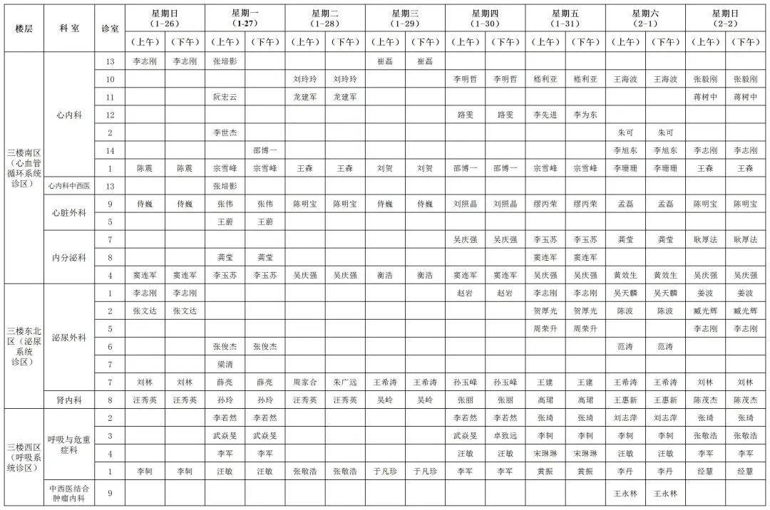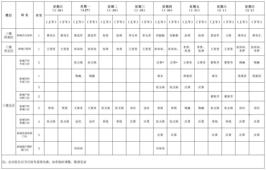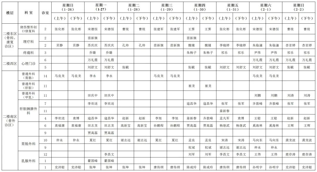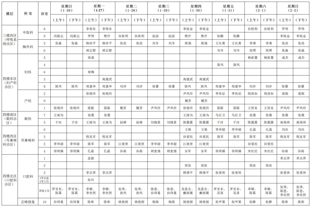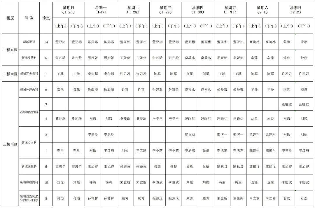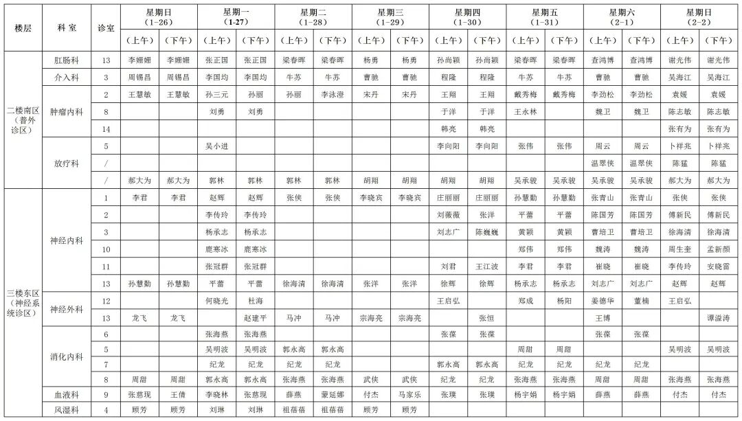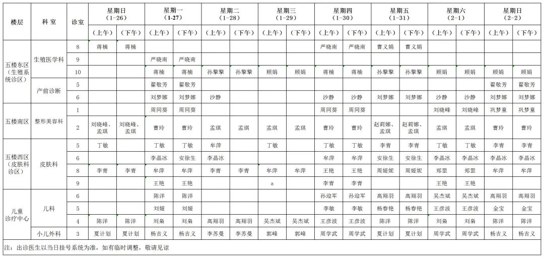 1月28日(周二)专家门诊调整至2月1日(周六)、1月29日(周三)专家门诊调整至2月2日(周日)。